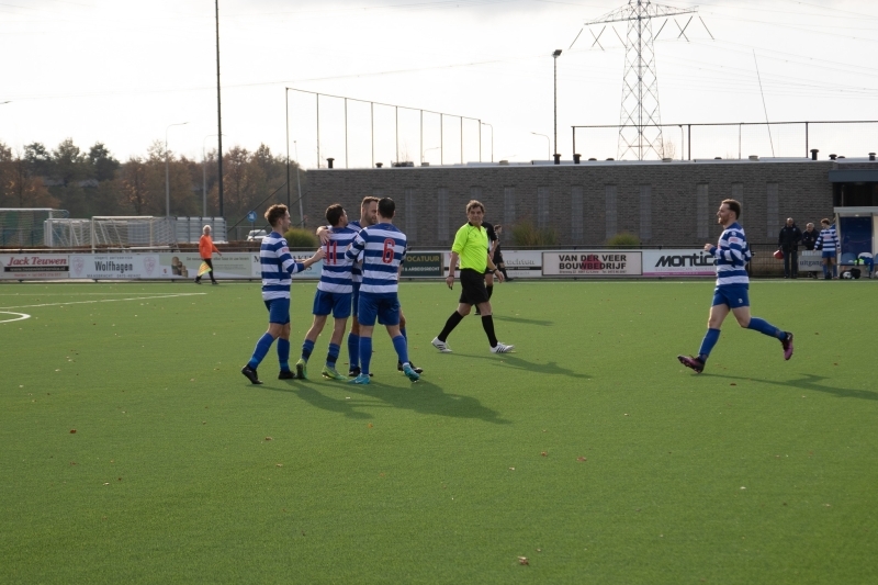 Binnen drie minuten lag de bal alweer achter doelman Kay Huskens. Een steekbal over de linkerflank van Oranje Blauw '15 kon niet worden voorkomen en het schot van de linksbuiten werd niet volledig gepareerd. Hierdoor kon de meegelopen rechtsbuiten de bal eenvoudig in het doel tikken. Nog voor rust liep de score op naar 3-0.